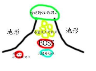 毒囊放置位置究竟在什么地方。图片上看到毒囊位置成一条直线往后延伸。很多人都有不同的看法,毒囊应该在后面铺满又或者应该放一条直线。其实毒囊放置位置根据团队站位而定。并没有固定的死位置,只需要BOSS召唤蜘蛛阶段炸到大蜘蛛即可。