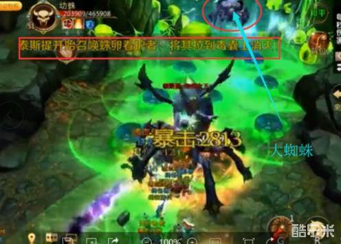 大蜘蛛出来后会连线一名玩家大蜘蛛会一直往连线的玩家身边跑,而地上的毒囊就是这个时候用到了,大蜘蛛走到毒囊里面就会瞬间被炸死,大蜘蛛会刷新5只出来。只要让他炸死就行基本不用管。