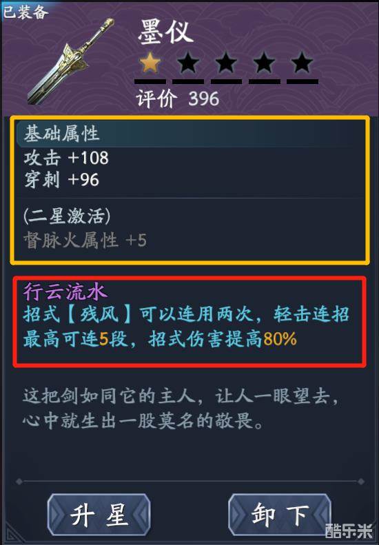 所有武器的基础属性在论剑天梯中都是拉平的,与武器品质、星级激活均无关(黄色框内容)。