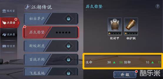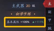 武库:武库中的兵器谱,此处升级提供的生命、防御、攻击加成等基础属性加成(图中黄色框内容)同样不会带入论剑,只在PVE中有效。