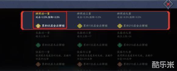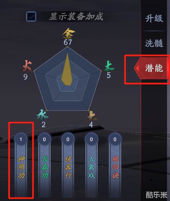 内功的潜能特性。只有内功潜能中激活的特性(红色框内容)会带入论剑。
