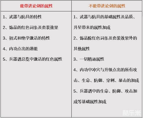 内功冲穴与升级。内功中冲穴与升级点出的所有攻击、生命、防御、穿刺、暴击的加成(黄色框内容)都不会带入论剑中。