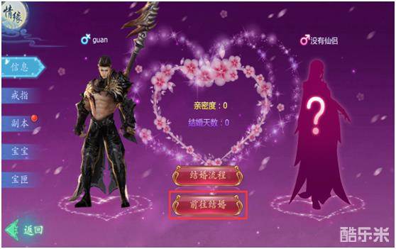 打开之后点击“前往结婚”即可传送到姻缘殿并打开结婚界面~