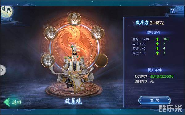 境界系统也是提升战力的一个重要途径,每个境界会有5层,每层都需要达到一定战力才能进行提升,成功提升5层后就可以突破到下一个境界。战力就会有一定的提升。达到筑基境界急要消耗境界材料(可以通过打boss和市场购买),想要尽早成为永生大神的就要努力提升战力,多打boss了。
