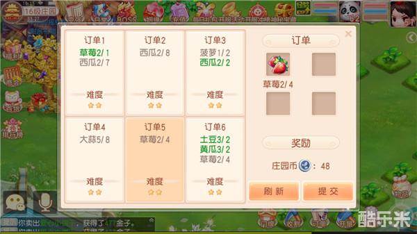 提升庄园等级,靠的收获农作物并提交订单。庄园每天都会收到新的订单,只要提交了相应数量的农作物,就可以完成订单获取庄园币。