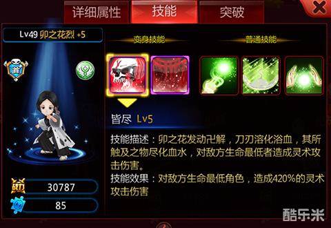 皆尽:卯之花发动卍解,刀刃溶化浴血,其所触及之物尽化血水,对敌方生命最低者造成灵术攻击伤害。