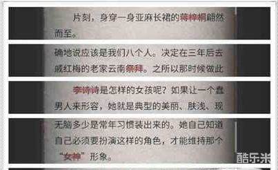 玩家可以根据上面的图片对线索进行分析,现在篇主要的过法还是要玩家细心,可以察觉文字中的不妥之处。掌握了这个技巧,后面的难关就迎刃而解了。