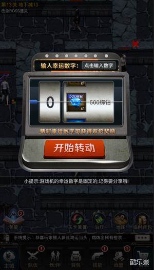 地下城会出现抽奖机,抽奖机有几率摇出500钻石,如果是双倍就是1000钻石,虽然几率比较坑爹,但是万一中了就是一笔可观的收入了。其次地下城会出现NPC,比如答对仓老师的问题也会获得100钻石。