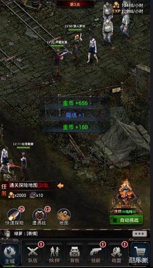 游戏主要的经验获取方式是探险,探险可以挂机选择自动挑战BOSS,通过击杀小怪和BOSS可以获得大量经验。