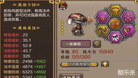 大招是切后排单体技能,并且会回血,因为技能吸血与伤害值有关,那一休禅师的攻击属性其实也是非常关键的。二技能是一休的招牌技能,不停攻击敌方最高法强目标,一般来说最高法强都是最强的输出英雄,也是最脆弱的英雄,假如又是最后一个的位置的话,那么就会受到一休极大的限制。三技能增加了一休的生存能力,四技能光环技能,增加全体法术防御,让整个队伍对抗法系队伍上了一个台阶。