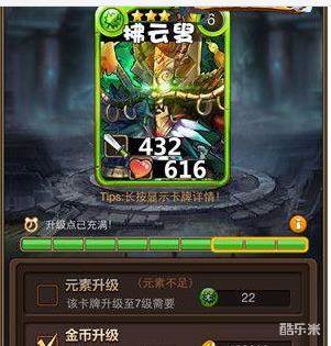 当然,卡牌是可成长的,当实力无法应对战斗时,卡牌就需要升级了。升级、升阶都可以增强卡牌的三维并解锁新技能。