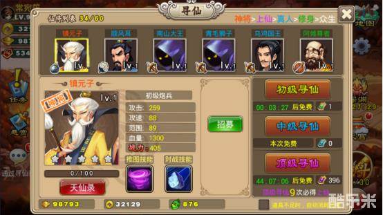 寻仙是《塔防西游记》核心玩法之一,玩家在可以通过初级寻仙、中级寻仙和顶级寻仙,获得不同级别的仙将,顶级寻仙有一定概率获得橙色神将。英雄赶紧点击寻仙,使用寻仙令可以获得你想要的仙将!
