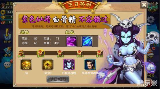 现在完成3日目标,即可以获得紫色炮兵小龙女;连续5天登陆就赠送紫色弓手白骨精,小伙伴们都惊呆了,赶紧来玩吧!而且顶级寻仙首次招募必得紫色仙将,可以说小白玩家新手拿3个紫色仙将都是很轻松的事情。