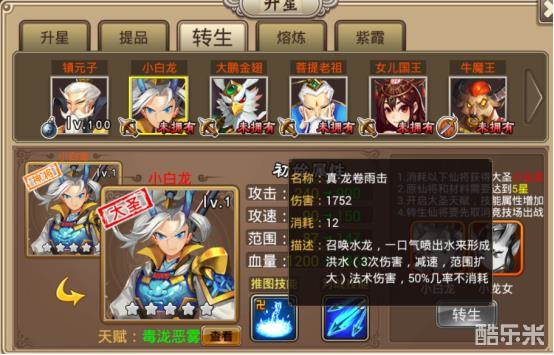 3. 转生:转生可以获得最强大圣仙将!消耗一个指定的五星材料神将,把神将转生为超强力的大圣仙将!大圣仙将具有特色“大圣天赋”,可以加强塔的攻击效果。大圣仙将升星需要消耗大量仙石和一个五星材料神将。
