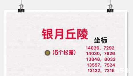 银月丘陵有5个位置,小伙伴们可以去看看,如果没有的话应该是被人摘走了,可以选择继续等松露的下一次刷新或者直接去下一个坐标点。