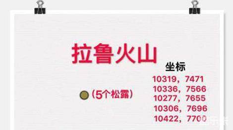 拉鲁火山有5个位置,小伙伴们可以一个一个扫过去,一般是能拿到松露的,不过要做饲料的话要多跑几趟了。