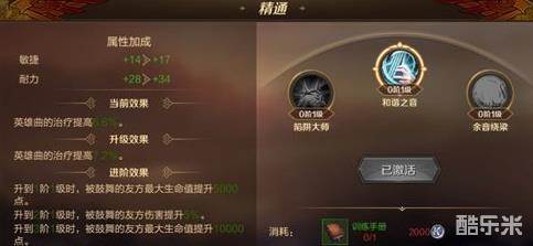 吟游诗人是辅助回血类职业,而和谐之音能有效提高英雄曲的治疗效果,可以增加我们自身的耐力、敏捷属性。