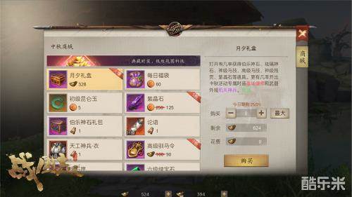 中秋商城现已开放,9月13日-9月26日活动期间,将军可以在商城购买各种珍稀道具及礼包,限时充值满赠达到指定额度可获得中秋礼券,使用该礼券兑换多种珍品哦!