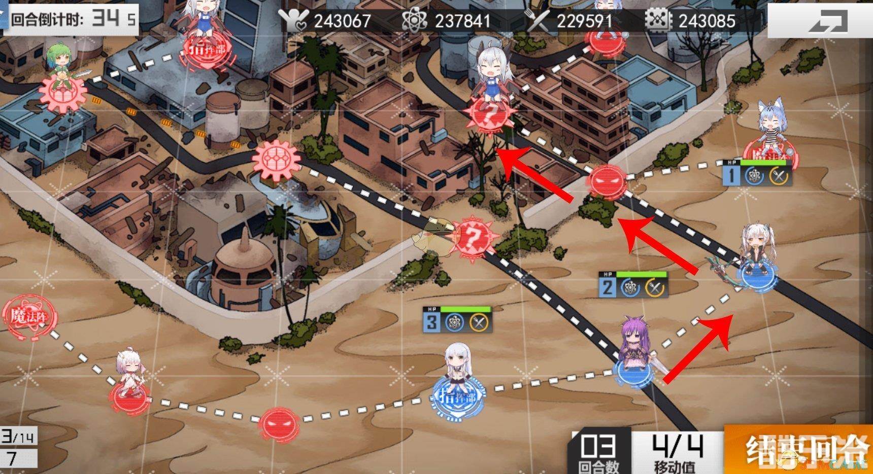 梯队3往敌方指挥部方向移动5格,占领指挥部即可S胜。
