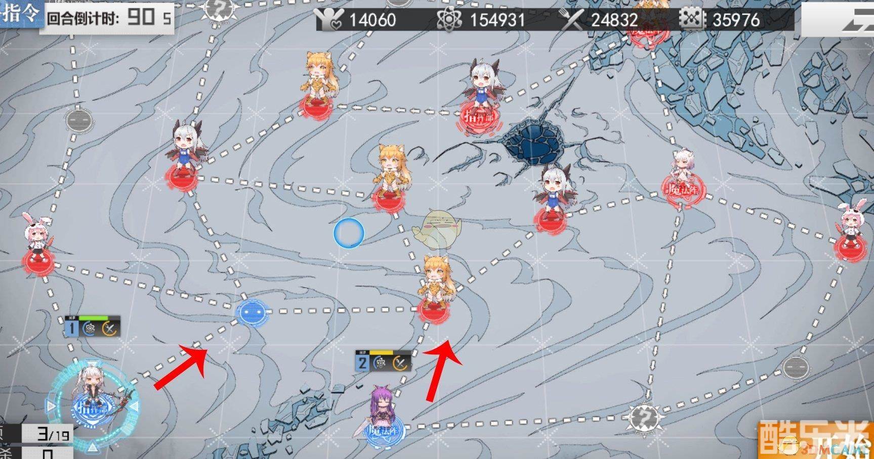 2、梯队2向上方前进一格,魔法阵部署梯队4。