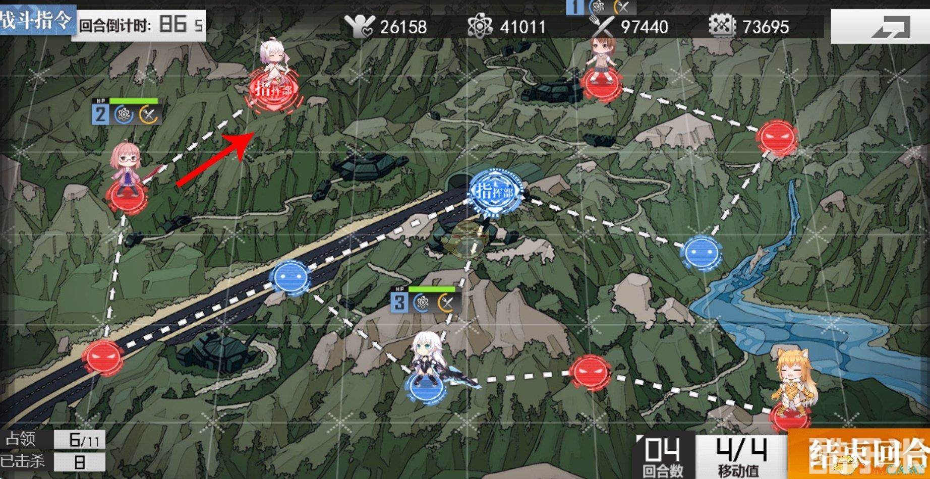 梯队2前往敌方指挥部即可S胜。