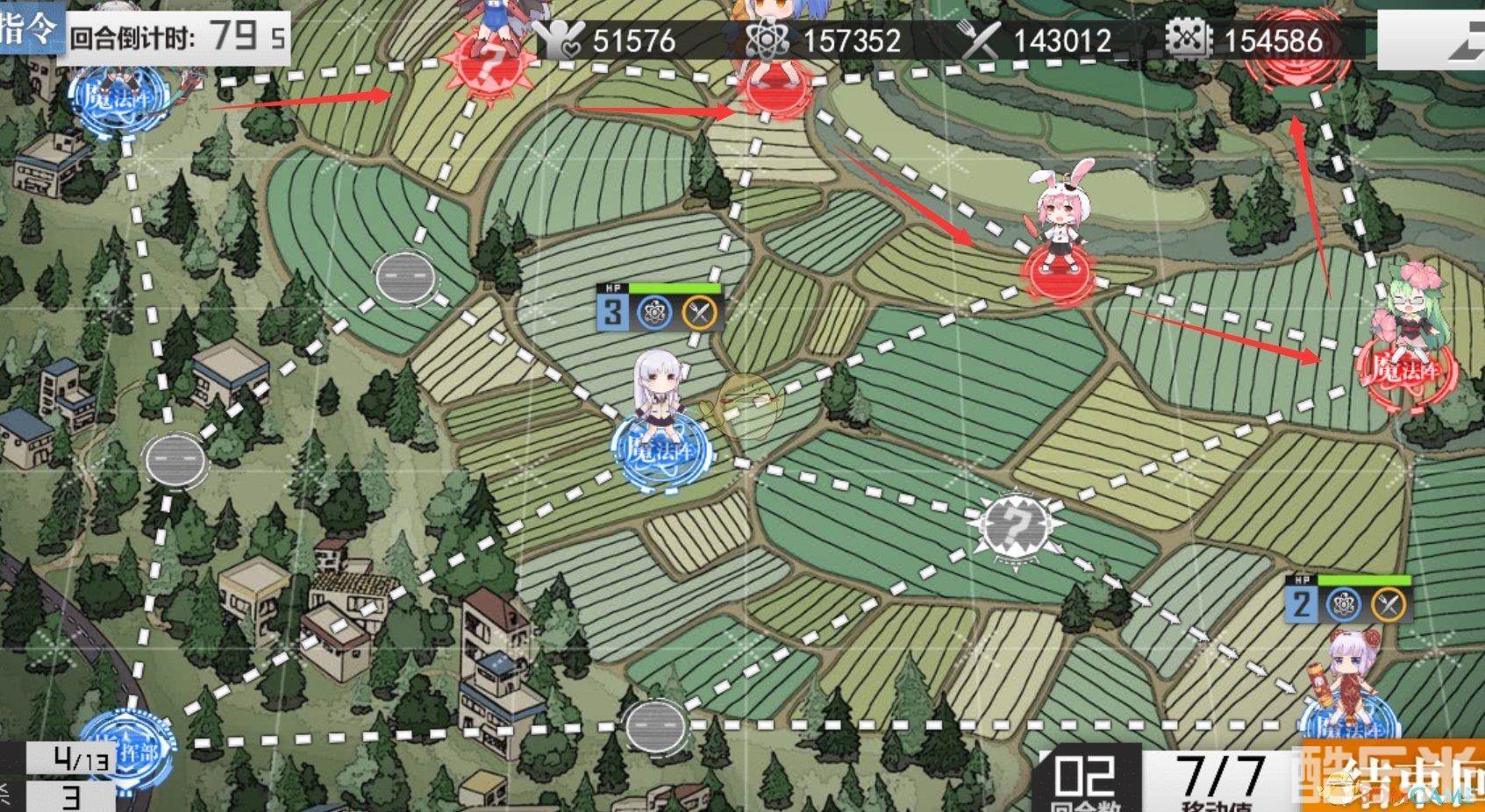 梯队1向按照图示向右上方前进击杀敌方(切记不要占领指挥部)。