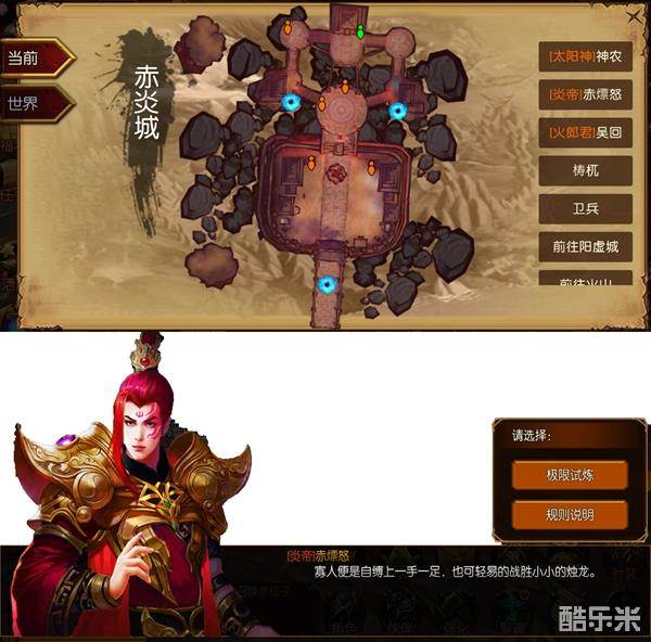 极限试炼的入口不容易找到,活动入口在赤炎城的赤熛怒那里,我们可以通过日常任务进入极限试炼。