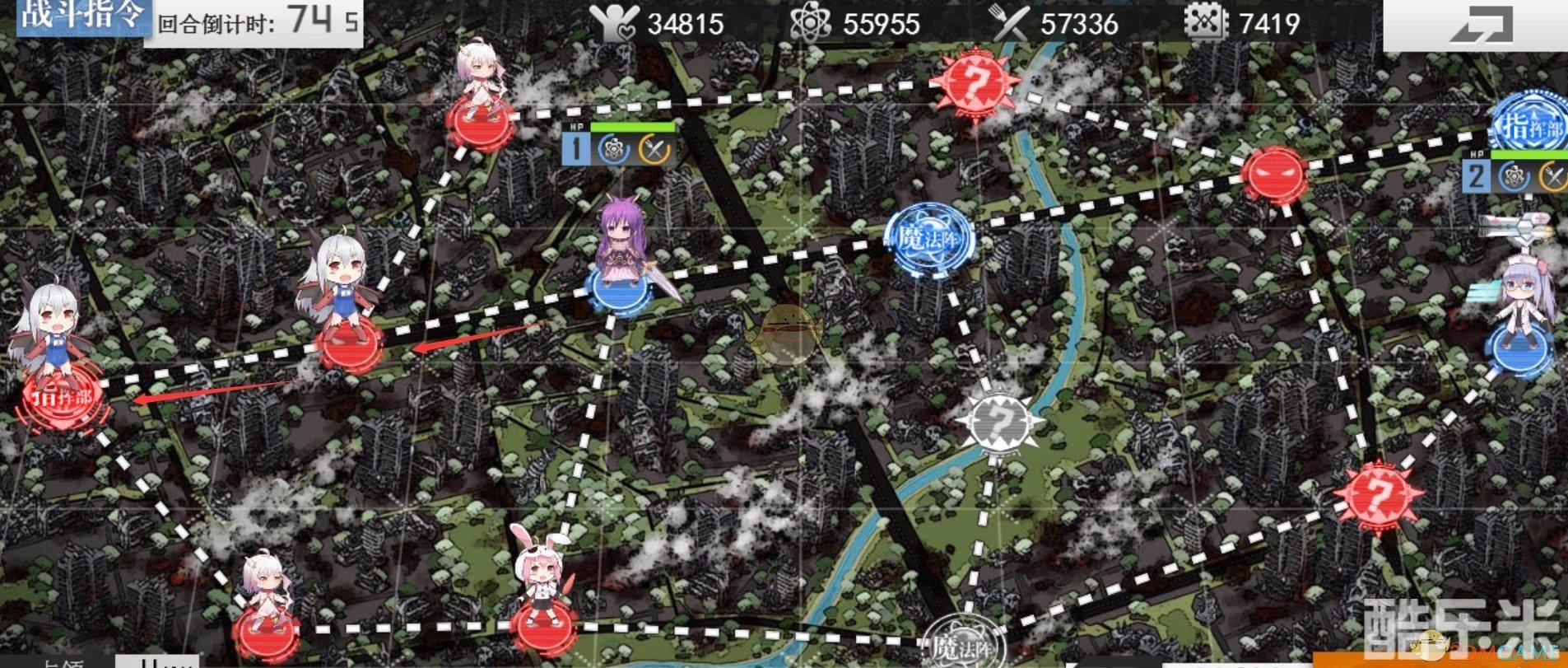 指挥部部署梯队1,向左前进2格占领魔法阵。
