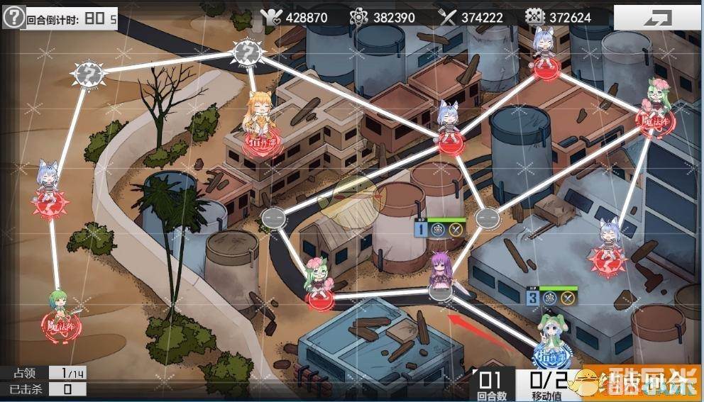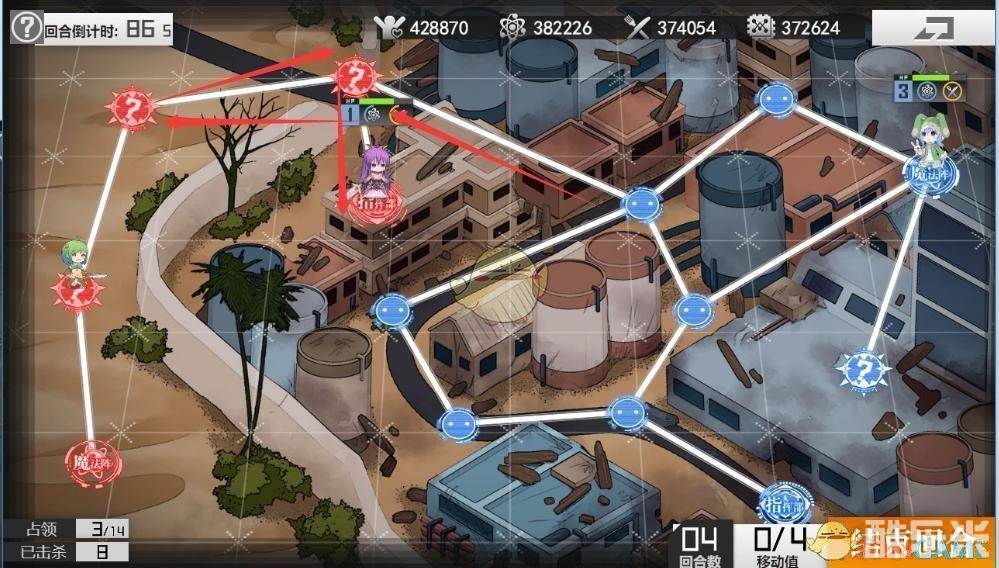 梯队1按照指示图,清完小怪再往回占领指挥部即可S胜。