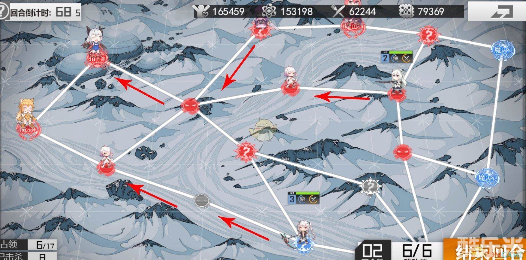 指挥部部署梯队3,最上方魔法阵部署梯队1,中间魔法阵部署梯队2。