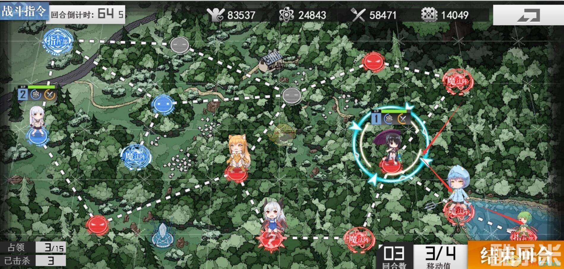 指挥部部署梯队2,魔法阵部署梯队1(主力梯队)。