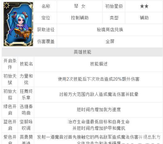 琴女,辅助,定位为控制,可以大范围眩晕敌人。下面和小编一起来了解一下吧。