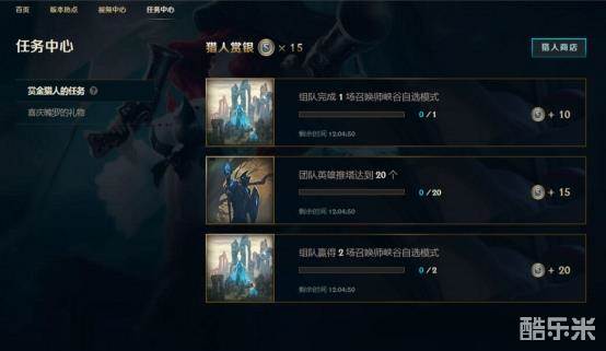 通过任务中心可了解到当天发布的3个分配任务,在任务剩余时间内完成任务,即可获得指定代币。指定代币可在指定商店中兑换皮肤碎片、英雄碎片、传送门、召唤师图标及其他奖励。