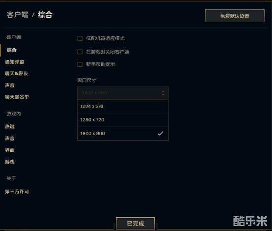 新版客户端尺寸支持自由切换,可在设置/客户端/综合中根据你的分辨率大小进行自由调节。