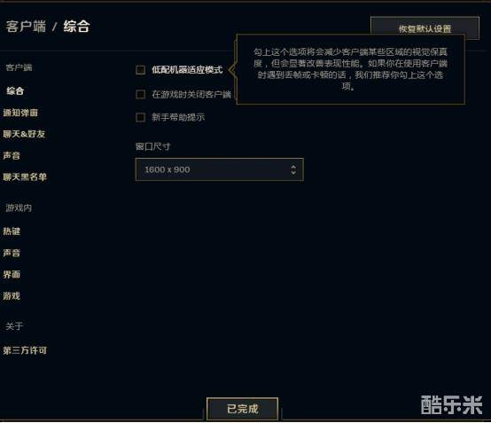 7.自动识别的“低配机器适应模式”“+“在游戏时关闭客户端”