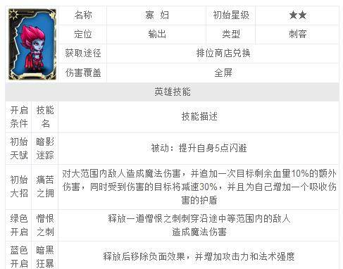 寡妇,刺客,定位为输出,大招造成伤害的同时可以为自己增加护盾。下面和小编一起来了解一下吧。