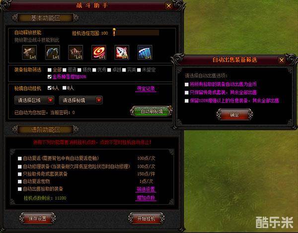 游戏内置的战斗助手,可以实现自动打怪,自动释放技能,自动拾取等功能。
