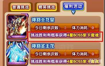 龙斗士们也可以去魔卡【福利活动】中挑战BOSS,获得BOSS四星紫卡魔魂。