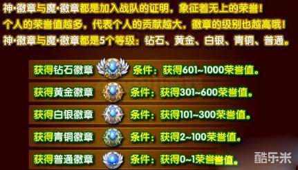 龙斗士荣誉徽章会根据神、魔战队队员自己获得的荣誉值来分发。分为钻石、黄金、白银、青铜和普通。