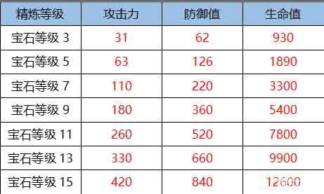在宝石等级3级以上时可以激活套装属性,宝石的最高等级是15级,而当前109级上限时宝石的最高等级是13级。宝石的15级套装属性能够增加攻击420点、双防840点、生命值12600点,最高级的宝石套装属性比起装备精炼30级的套装属性加成还要高。