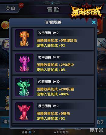 除了丰富的奖励外,对于那些热衷于角色培养的玩家来说,大冒险玩法中的图腾系统同样不同错过。在每个冒险场景中都散落着大量的图腾元素,玩家拾取后就可以用来强化图腾,提升生命、攻击、闪避、韧性等属性。同时玩家还可以选择宠物驻守图腾,大幅度提升该图腾的属性加成。