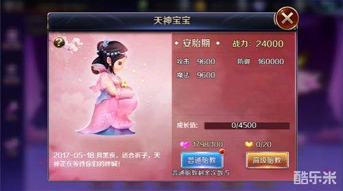 祈求成功之后,天神宝宝就进入孕育期。在这个阶段,可爱的小生命将会根据玩家的培养慢慢成长。请把最好的爱给你的宝宝吧。