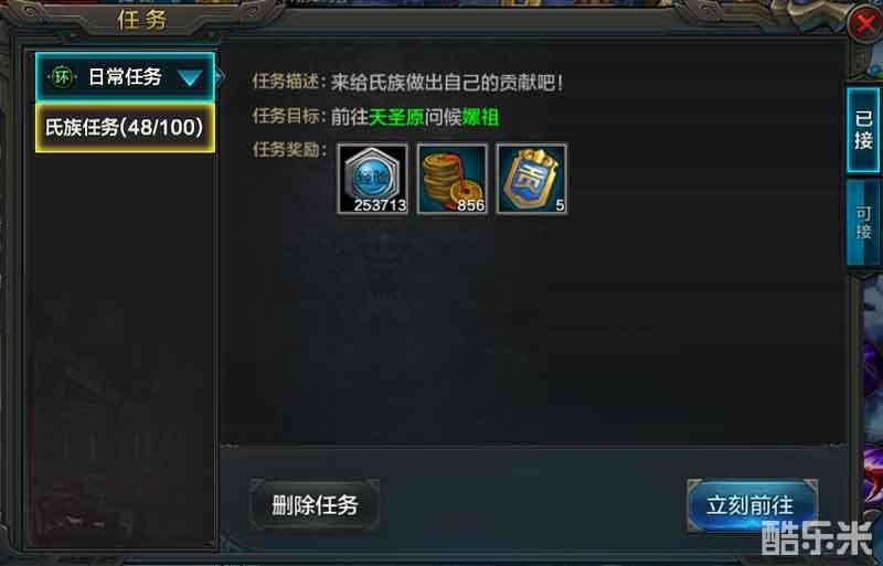 氏族周常任务是每周的100环任务,完成每环任务奖励5点氏族贡献,全部完成后会有500点贡献。如果帮助他人上交物品还可以获得更多的氏族贡献,上交一件4档装备就有100点氏族贡献奖励,上交低级战魂技能书奖励的贡献最多,达到了250点氏族贡献。帮助他人完成任务获得的贡献要远远高于自己做任务获得的贡献,所以在看到氏族成员发起任务求助时,要尽量帮助别人完成。