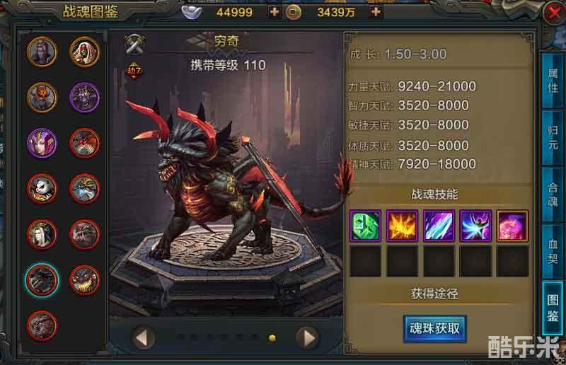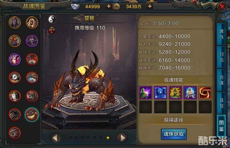总结:这四大凶兽战魂各有千秋,饕餮是比较值得推荐入手的,拥有和火麒麟一样的体质和精神天赋,智力天赋比火麒麟高出了1000点。