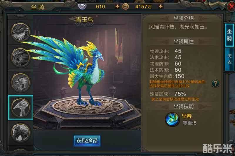 总结:青玉鸟和金仙宝芦这两款战场坐骑只能通过乾坤宝图挖宝获得,是属于“脸帝”、“欧皇”玩家的专属坐骑。