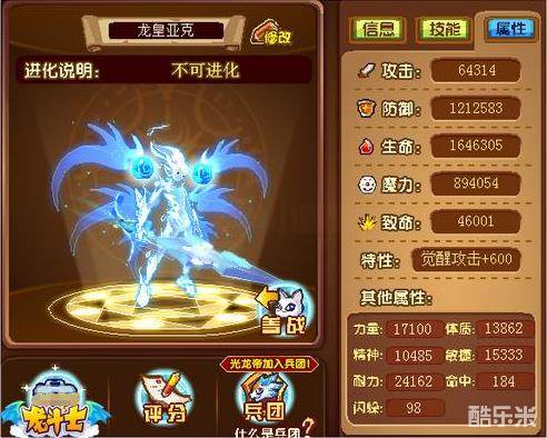龙斗士龙皇亚克15星90级属性图 龙斗士龙皇亚克满级属性图