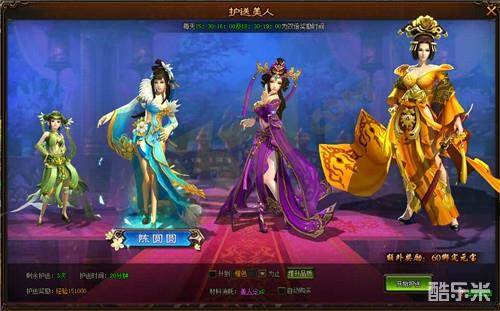 符合等级要求的玩家,每天可前往京城的左下方找到npc-郭大镖头,领取战无不胜护送美人任务。点击NPC后将弹出对话框,玩家可在此查看护送美人的相关信息。目前,每位玩家每天能护送3次,美女有绿色苏小小、蓝色陈圆圆、紫色紫暄、橙色李师师4种品种,美女的品种越好,护送所得的奖励越丰厚。