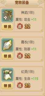 很多玩家都关心如何提升宠物战力,可以通过宠物进阶丹提升宠物阶数,阶数提高将额外增加人物角色的各项属性,大幅提高战力。喂食成长丹,成长丹可以百分比增加宠物的进阶属性;当然,宠物的阶数越高,可喂食的成长丹颗数越多,同样每颗成长丹增加的属性越多。需要提醒的是宠物成长丹可以通过功勋商店来兑换,每次成功进阶系统也会赠送成长丹。