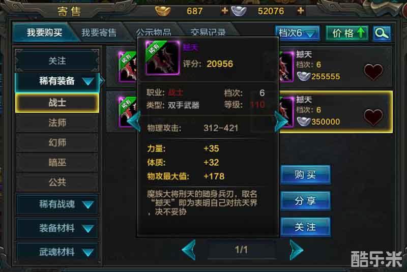 在等级达到110级以上可以打造6档装备,当前可以佩戴的部位是110级的武器、衣服、披风和11级的帽子、项链。6档装备的优势是评分、基础属性和附加属性更高,尤其是基础属性比起5档装备高出太多,以武器来对比的话,5档战士的双手武器战斧的攻击力是211-286点,而6档双手武器的攻击力是312-421点。在装备附加的属性上,6档武器附加的力量、敏捷、物攻、法攻、暴击率等属性上限也远远高于5档武器。
