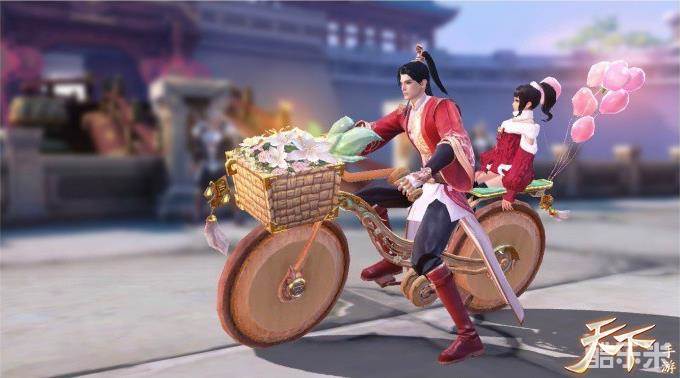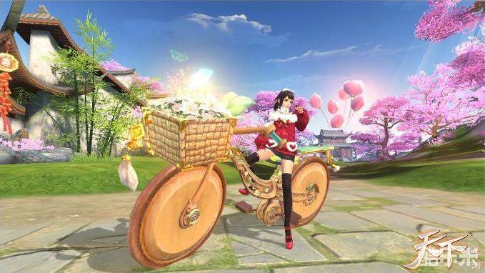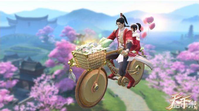 提起少年感,怎么能少得了上下学飞驰而过的自行车!《天下》手游纯木黑科技自行车坐骑“少年飞驰”活力登场,优雅的车身散发着独特的木料光泽。骑上它前行时,充满节奏感的踩动、飞扬的衣角,更是与微弓的后背、吹拂的清风一起,让人重返当年青春四溢的美好时光。舒适的后座则是TA的专属,赶快系上“少年飞驰”专属的粉色气球,载着TA一起穿梭在大荒的街道上,尽享青春吧!